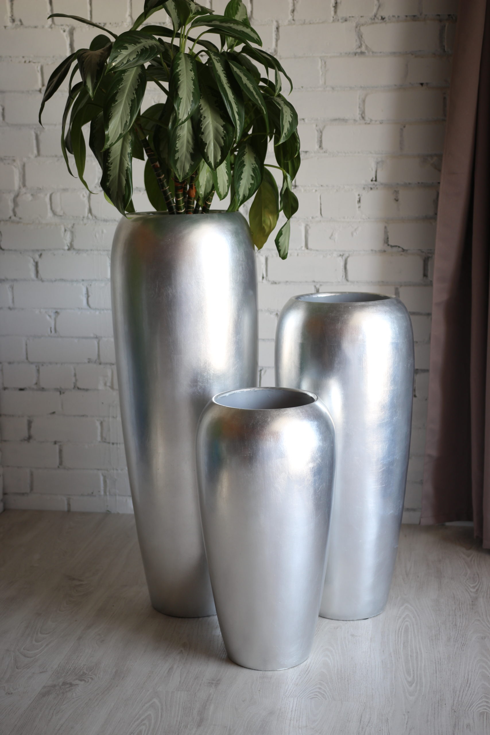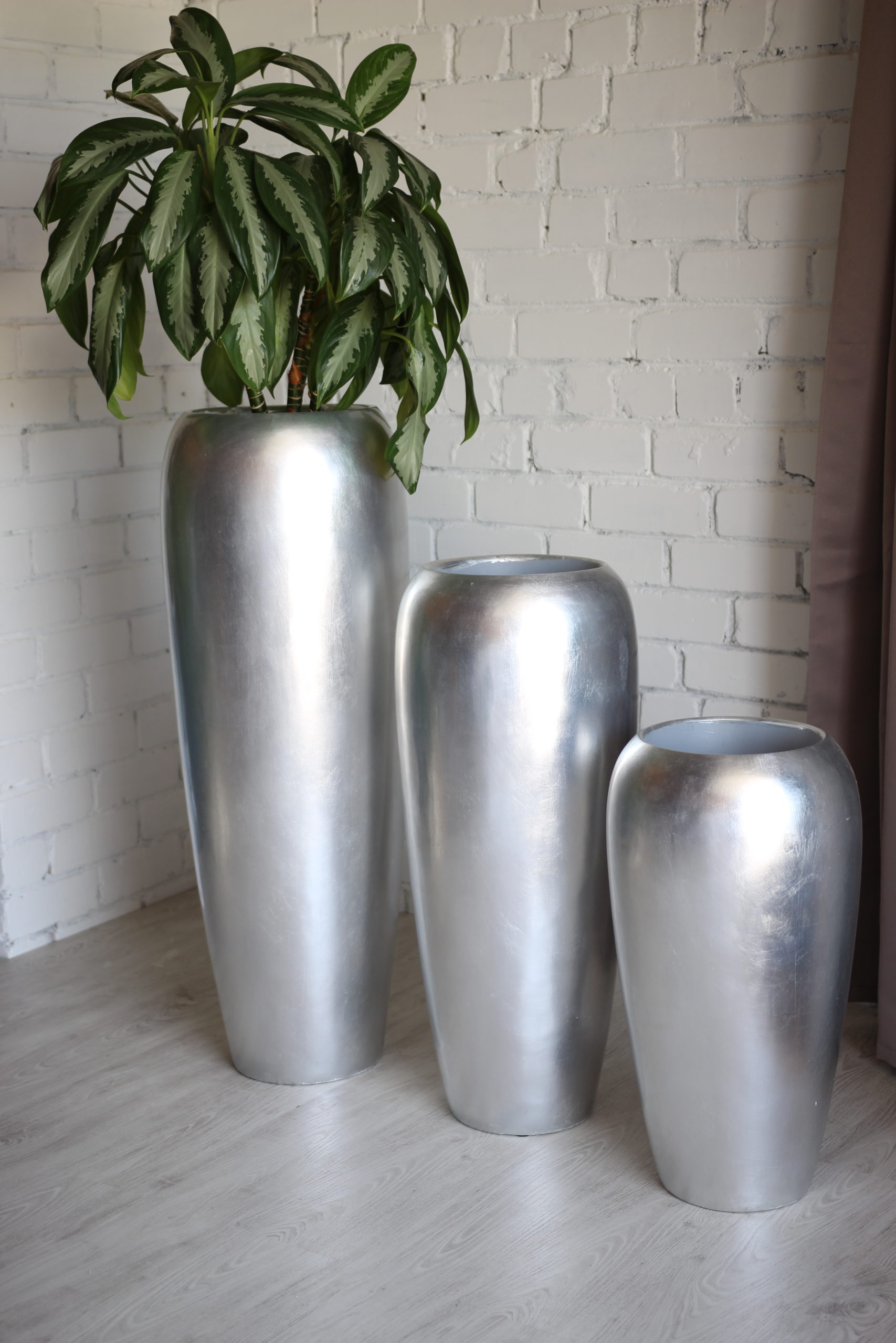 Dekoratyvus namų aksesuaras – vazonas Juka Silver. Šis stilingas ir elegantiškas, pilkos spalvos, blizgaus paviršiaus didelis vazonas pagamintas iš stiklo pluošto, todėl yra patvarus, nepralaidus vandeniui, atsparus aplinkos poveikiui. Prabangus, aukštas vazonas puikiai tinkantis kambariniams augalams, skintoms, sausoms, bei dirbtinėms gėlėms. Galite rinktis vazonus iš trijų skirtingų dydžių ir juos derinti tarpusavyje.
